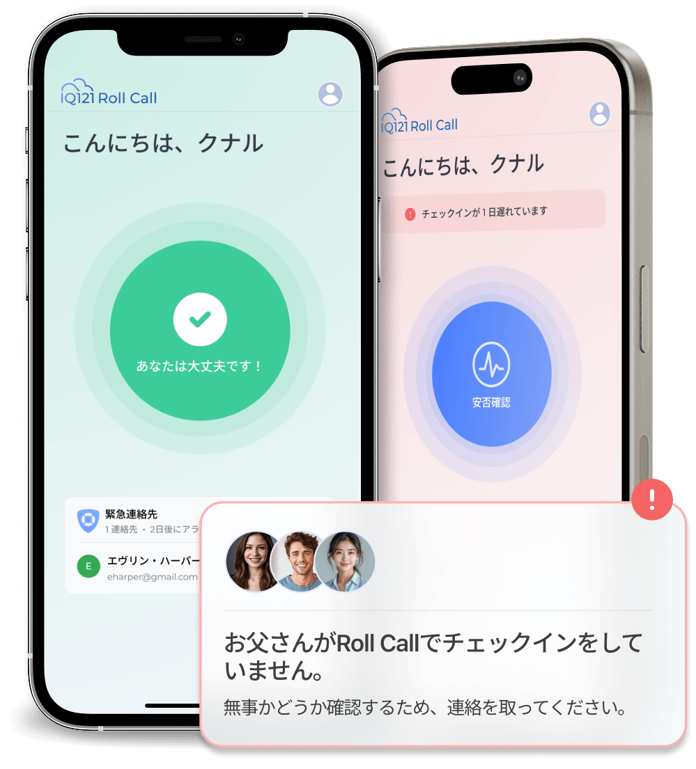 安否確認が行われなかった場合、緊急連絡先に通知が届きます。
