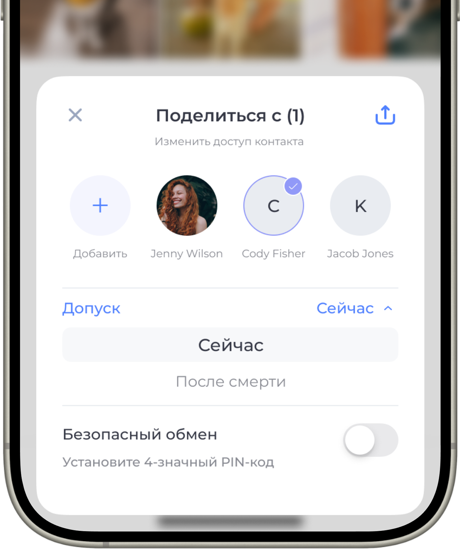 IQ121 дает возможность запланировать дату передачи, чтобы ваши близкие могли получить эти сокровенные данные в нужный момент.